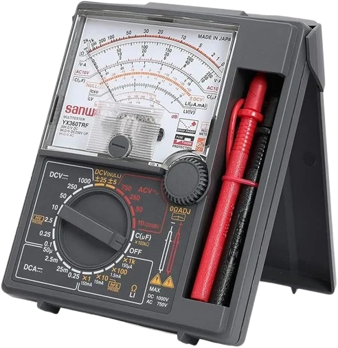 Precision SANWA analog multimeters for accurate measurement of voltage, current, and resistance.
