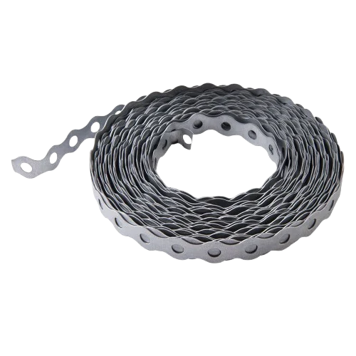 Strong galvanized fixing bands for securing pipes, cables, and conduits.